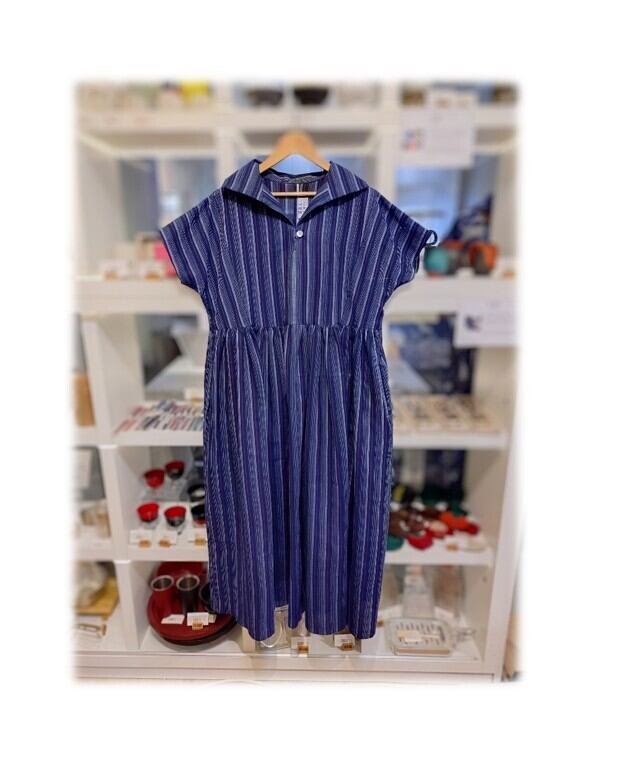 455 1点物 抜き衿レトロワンピース デッドストック浴衣地 しじら織り 昭和レトロ イタリアンカラ― 涼しい 夏のお出かけ