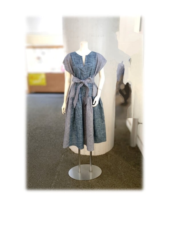 サッシュベルトでウェストマークして余所行き風な着こなしもできるし、