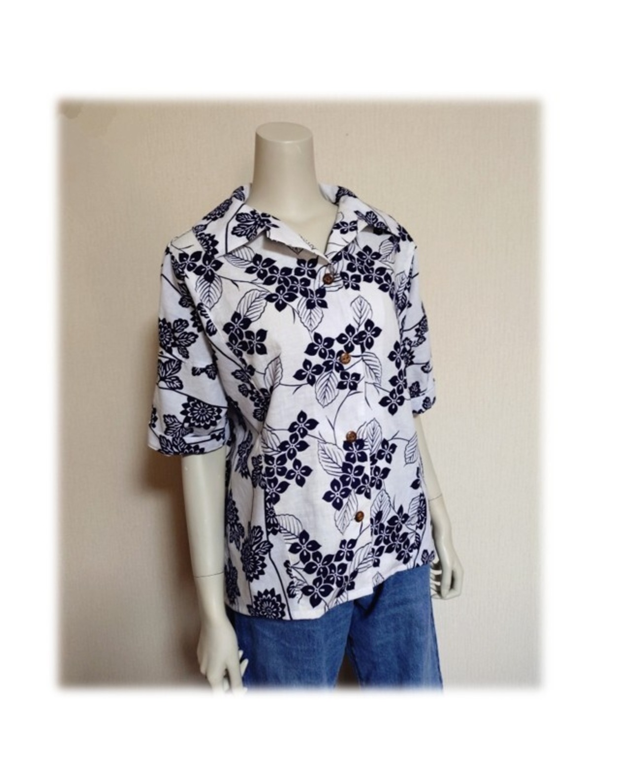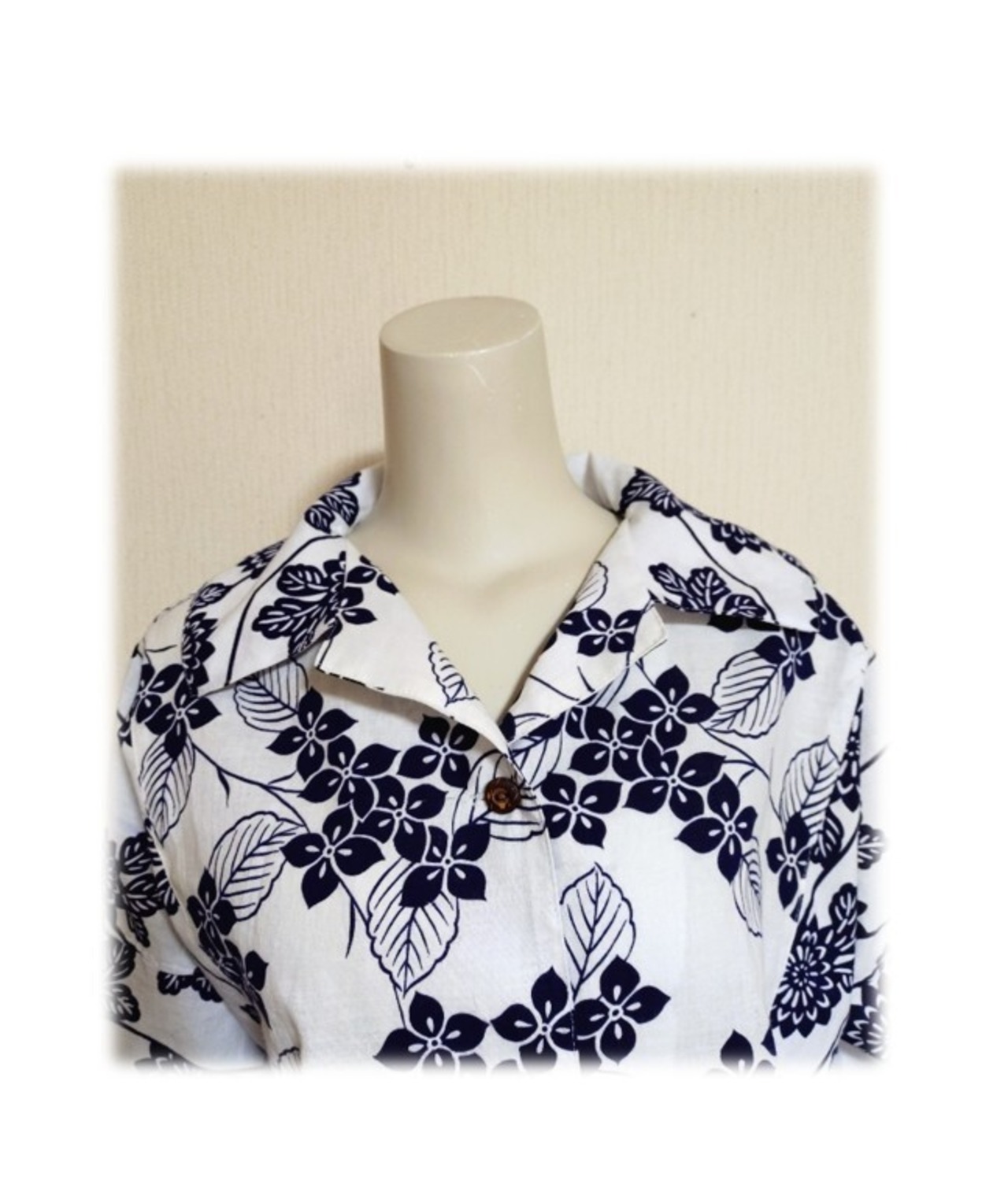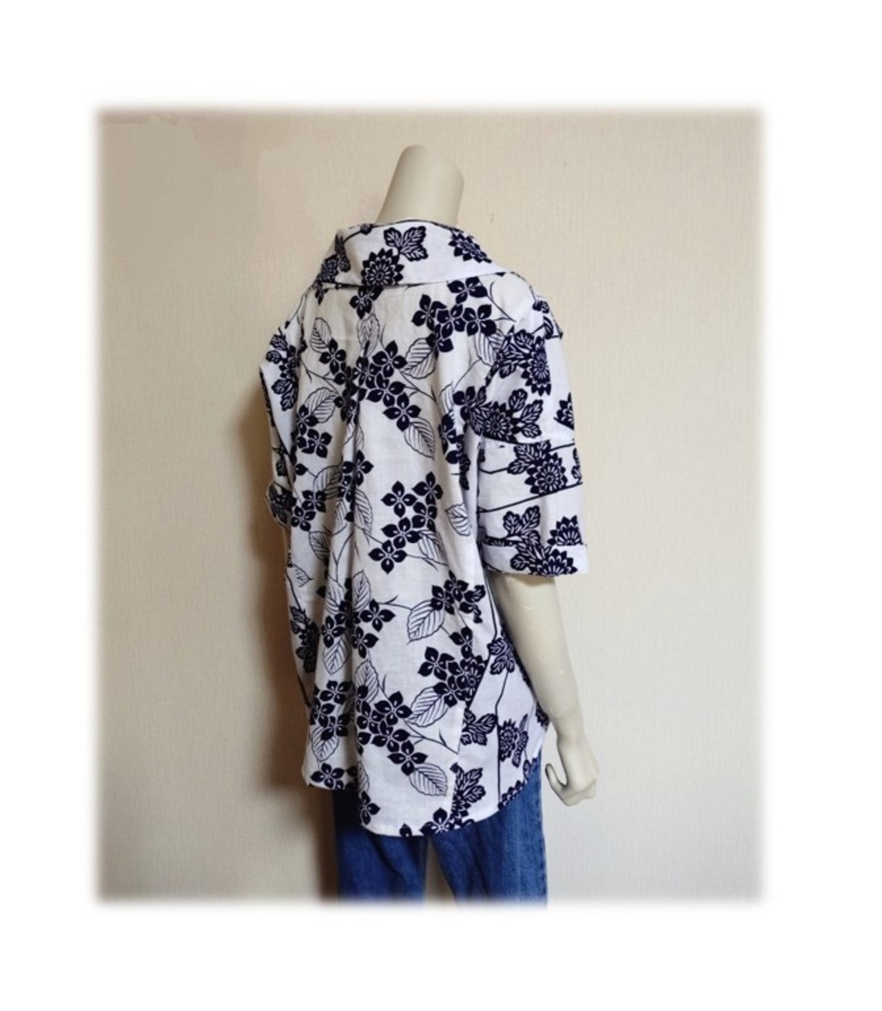 35 1点物 2柄柄浴衣リメイク レディスシャツ アロハシャツ ジャケット 抜き衿 レトロ