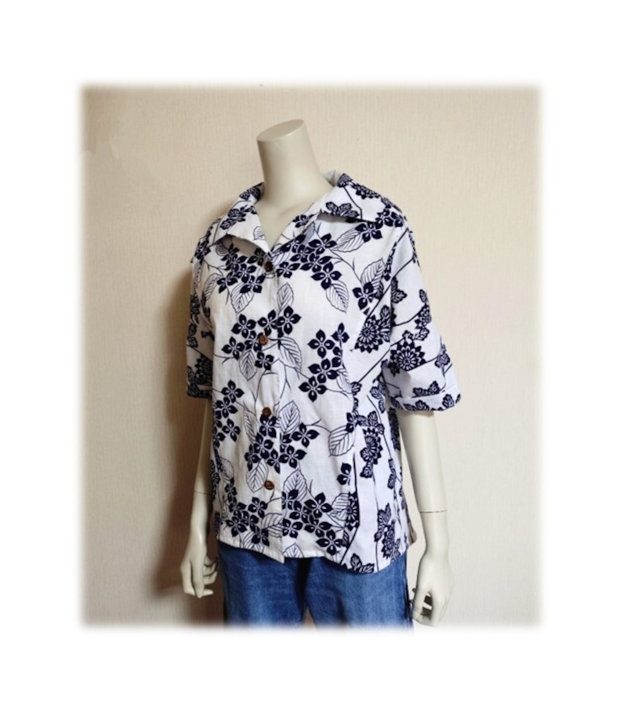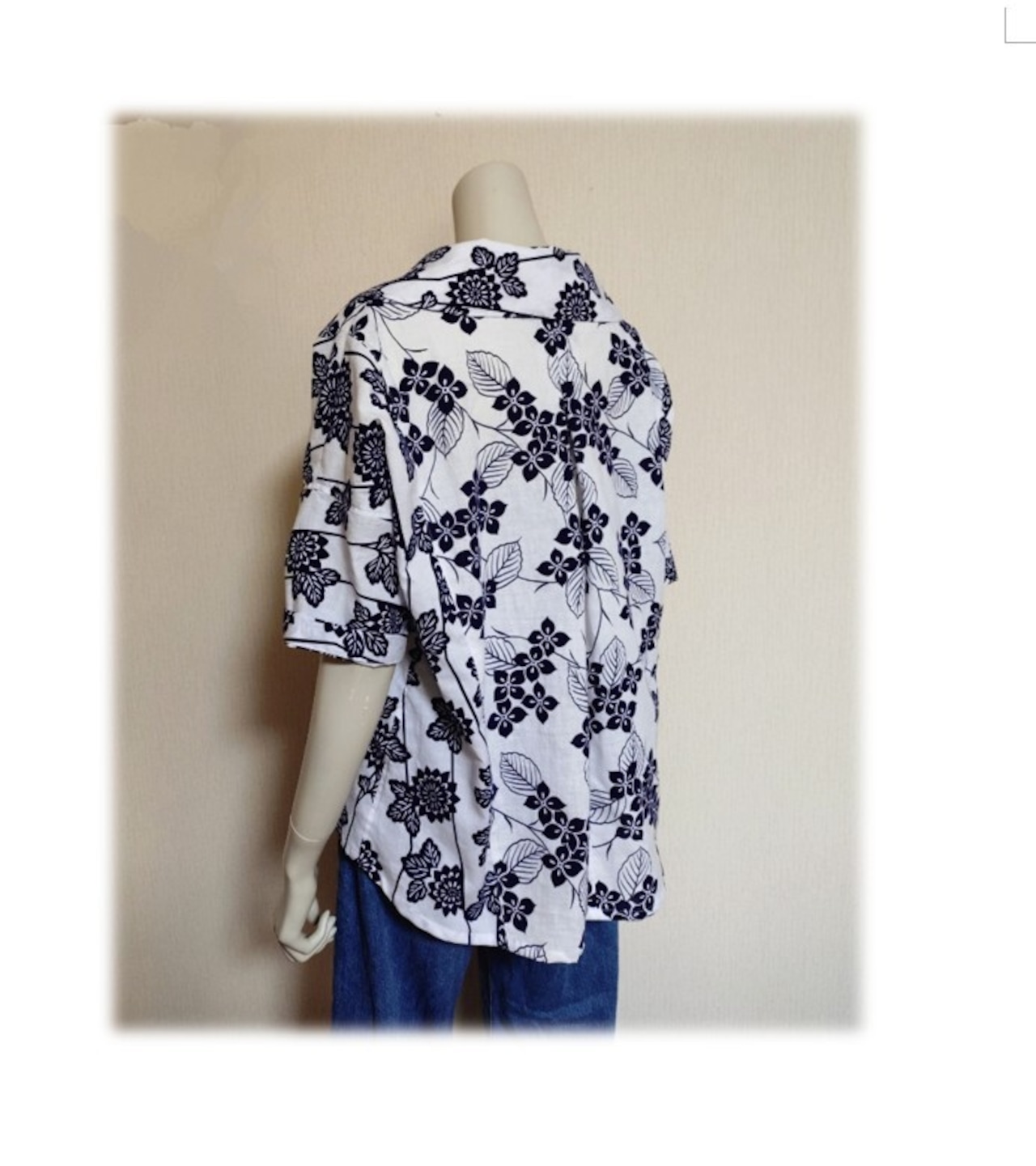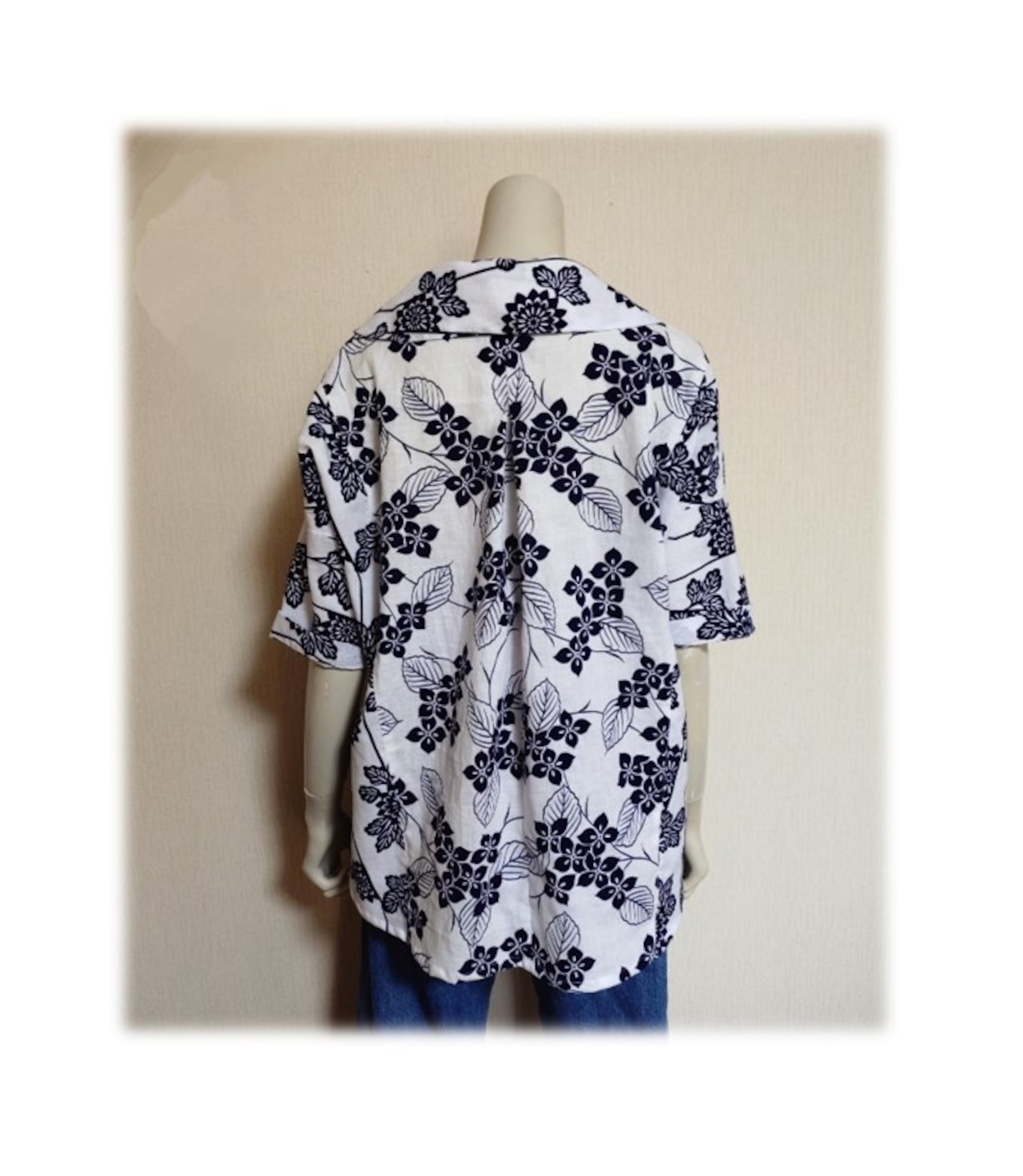 35 1点物 2柄柄浴衣リメイク レディスシャツ アロハシャツ ジャケット 抜き衿 レトロ