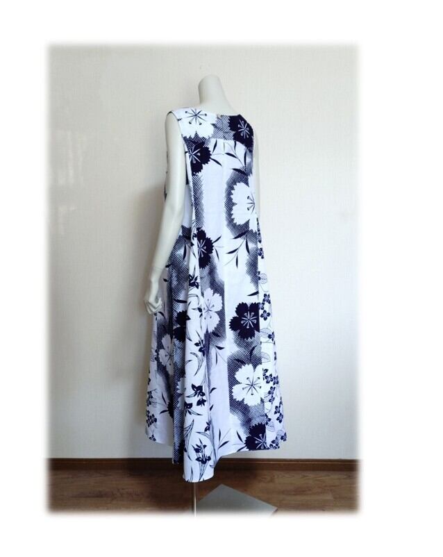 427 1点物 テントラインワンピース ジャンパースカート 紺×白 3種類の浴衣地 小さいサイズ