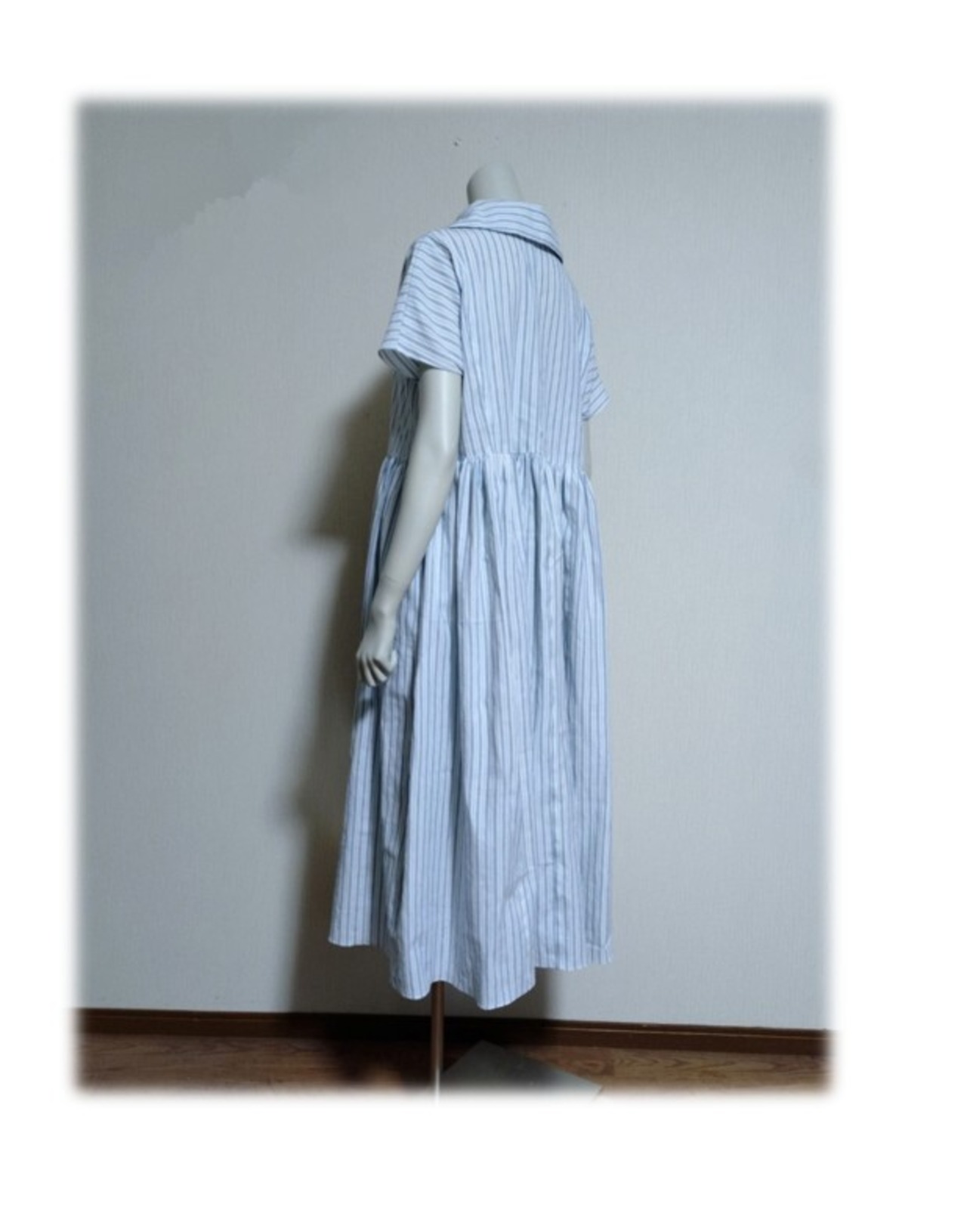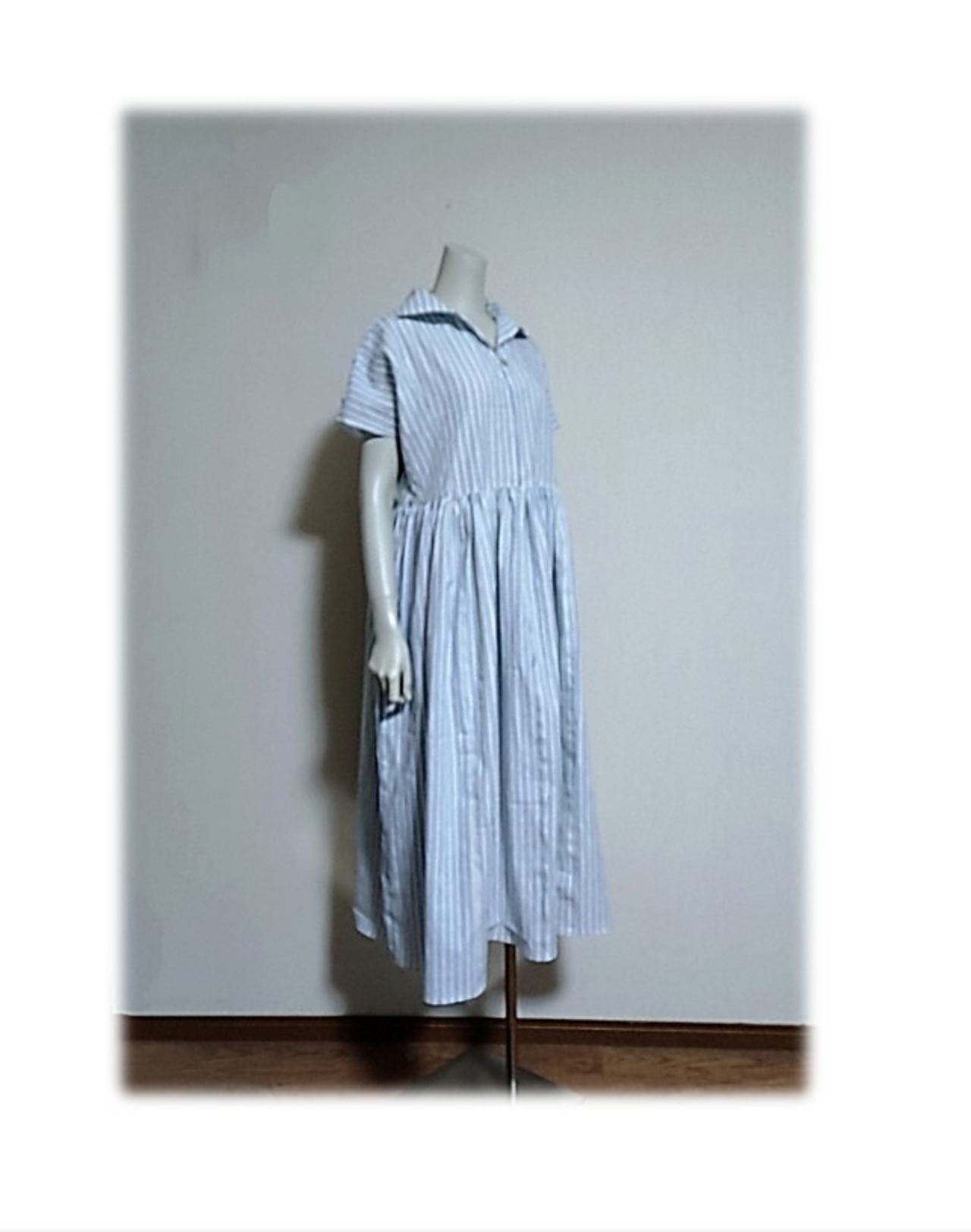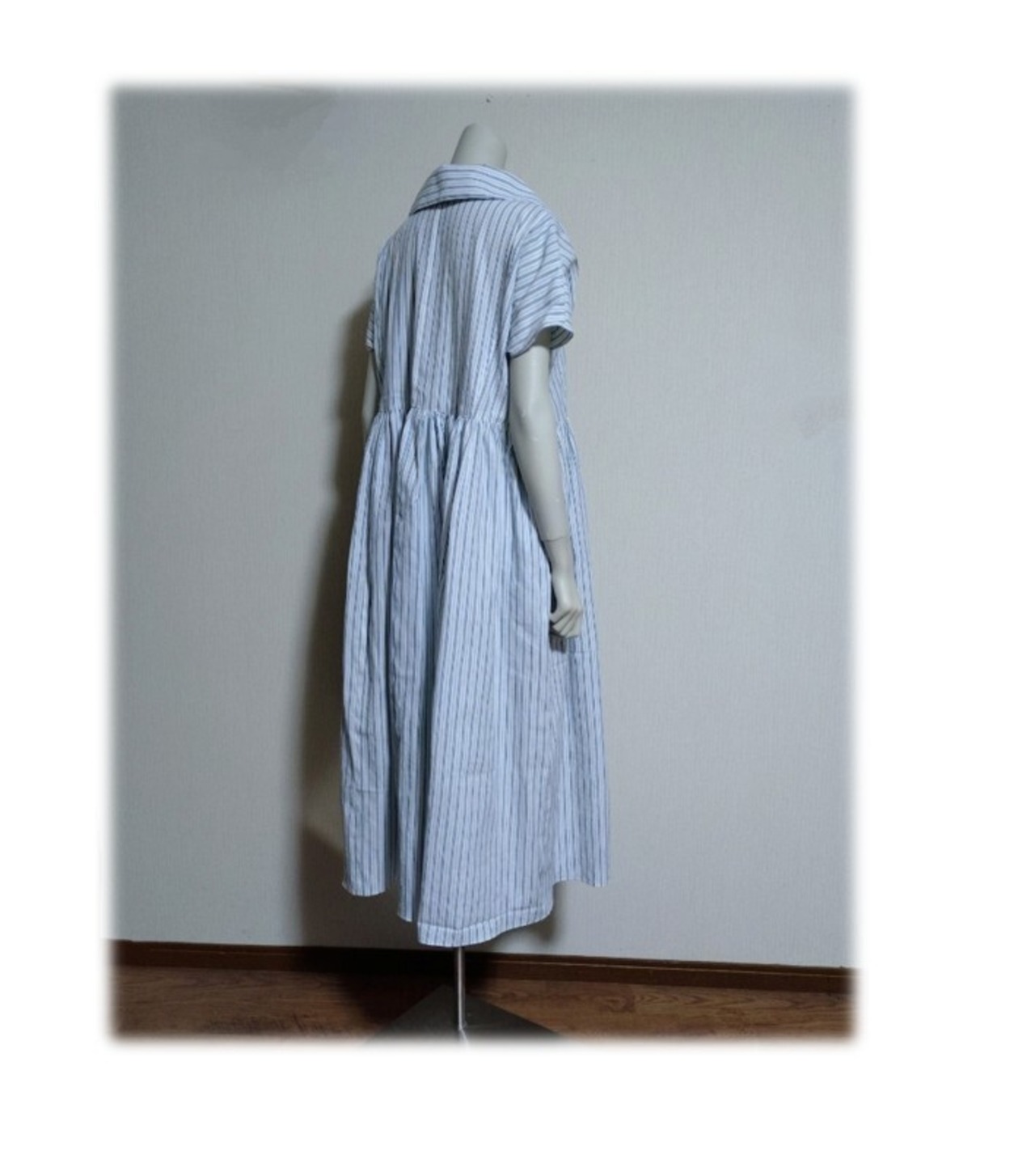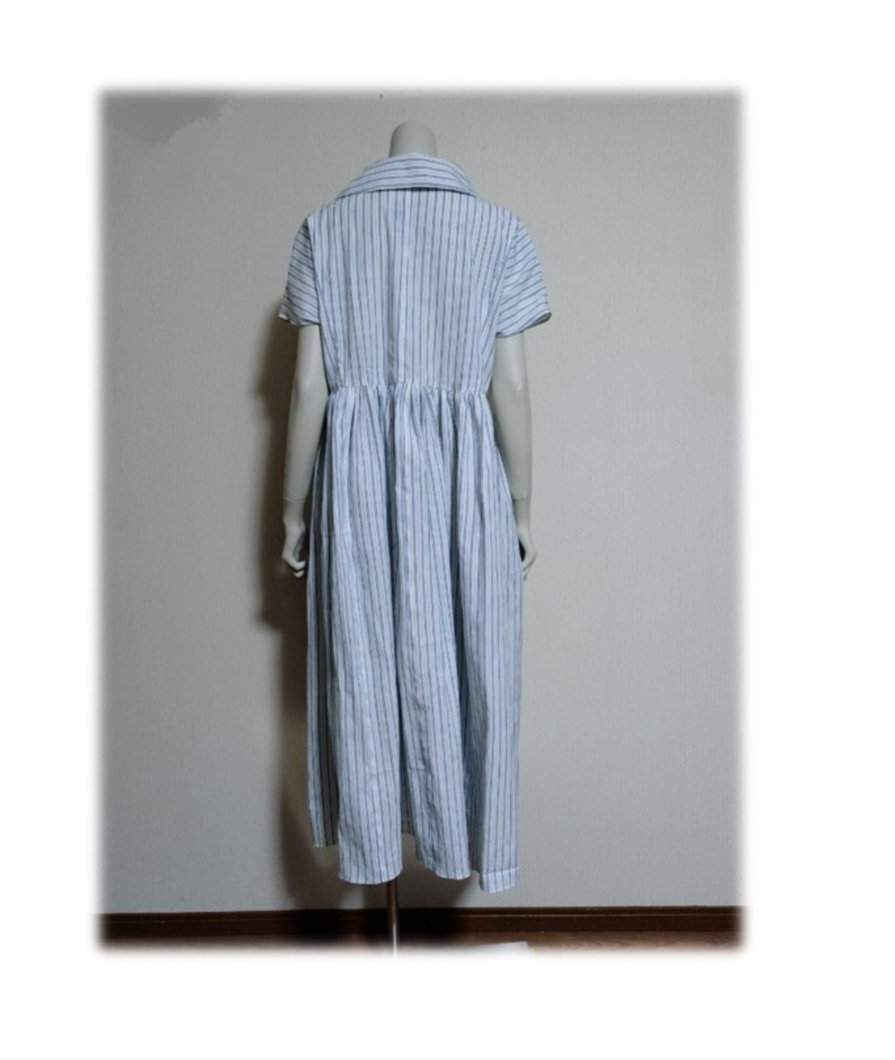 477 1点物 抜き衿レトロワンピース デッドストック浴衣地 ストライプ 昭和レトロ イタリアンカラ― 涼しい 夏のお出かけ