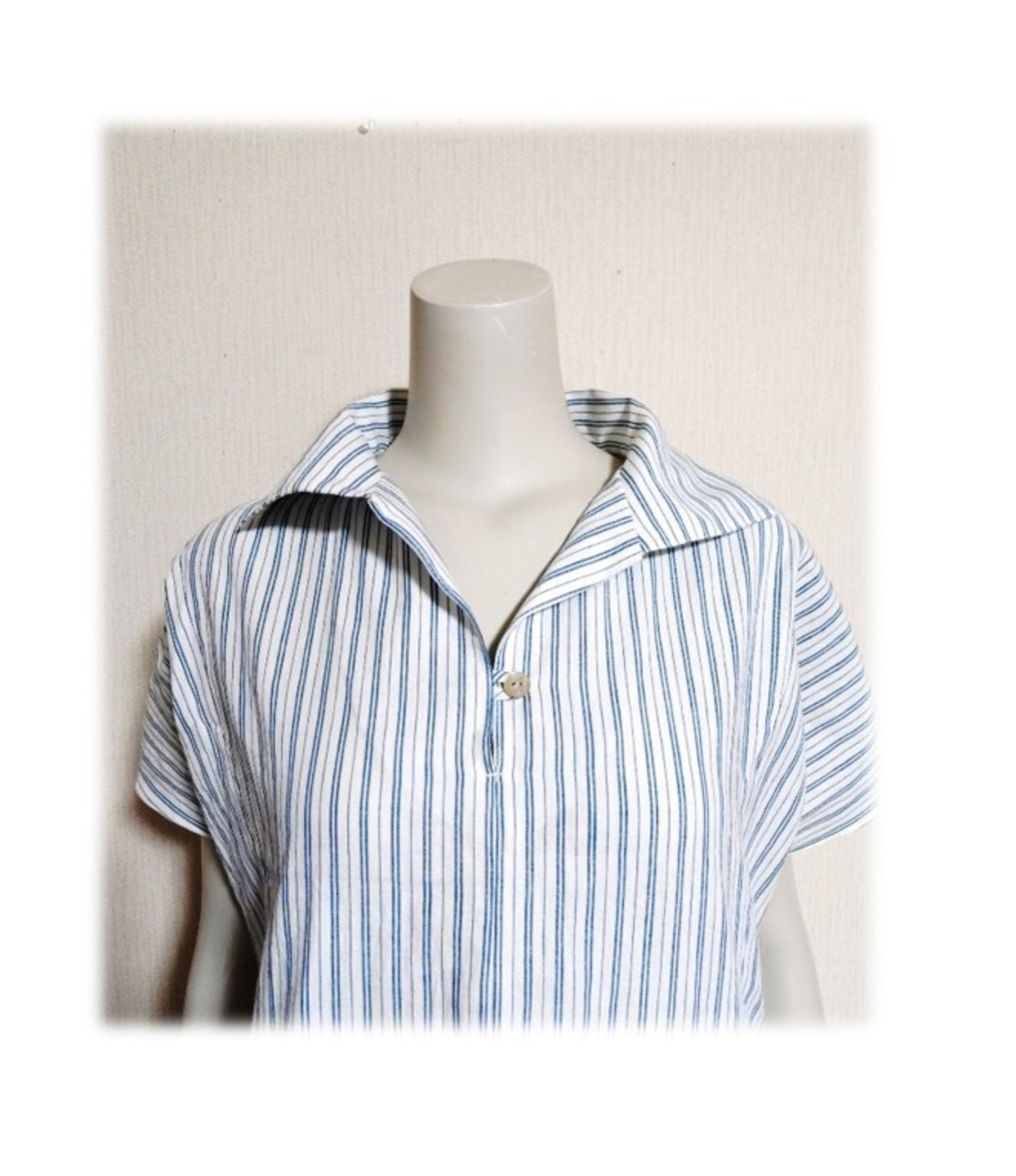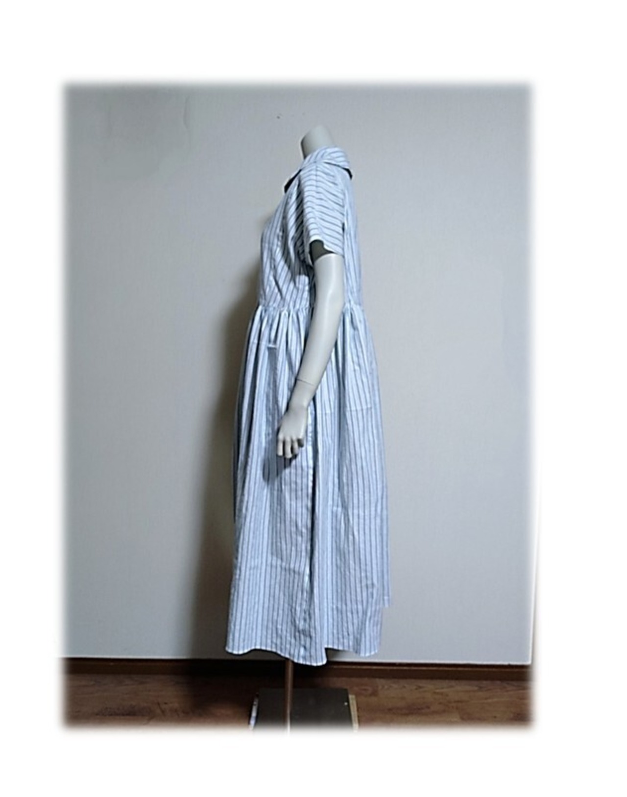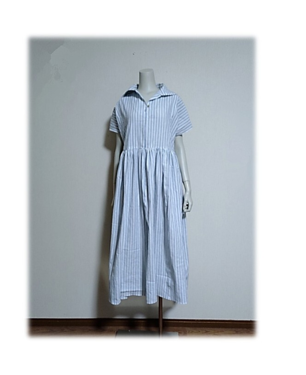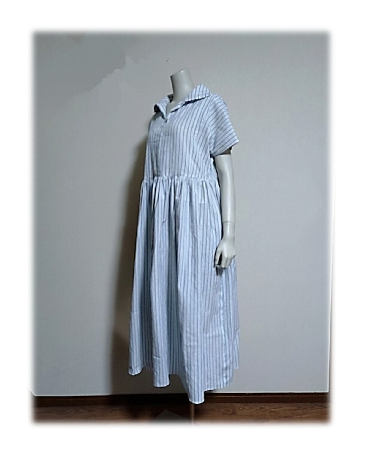 477 1点物 抜き衿レトロワンピース デッドストック浴衣地 ストライプ 昭和レトロ イタリアンカラ― 涼しい 夏のお出かけ