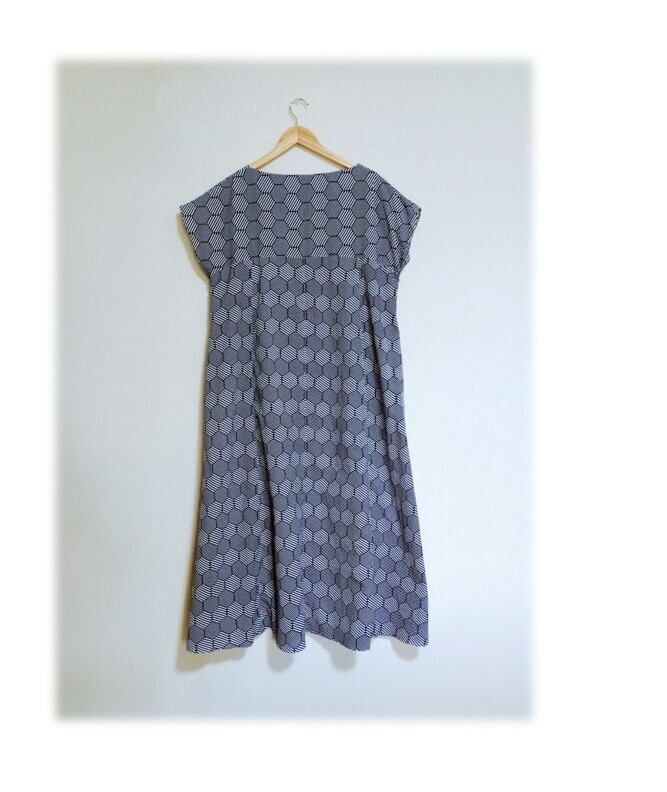 475 世界に1着 テントラインワンピース キーネック 亀甲柄 デッドストック浴衣地 着ると可愛い 夏のお出かけ