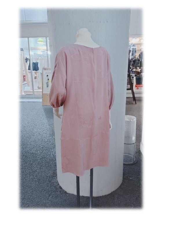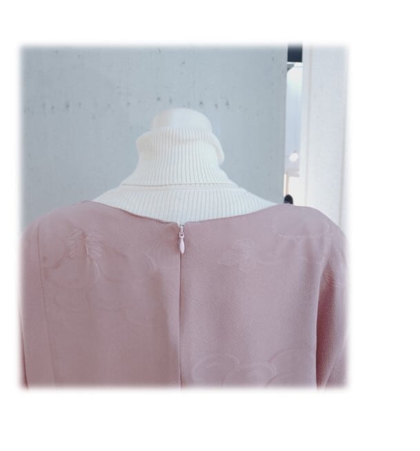 412 コクーンワンピーㇲ 体系カバー ピンクの着物 ジャカード風の柄 着物リメイク 春のお出かけ シルク