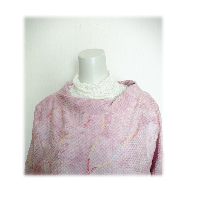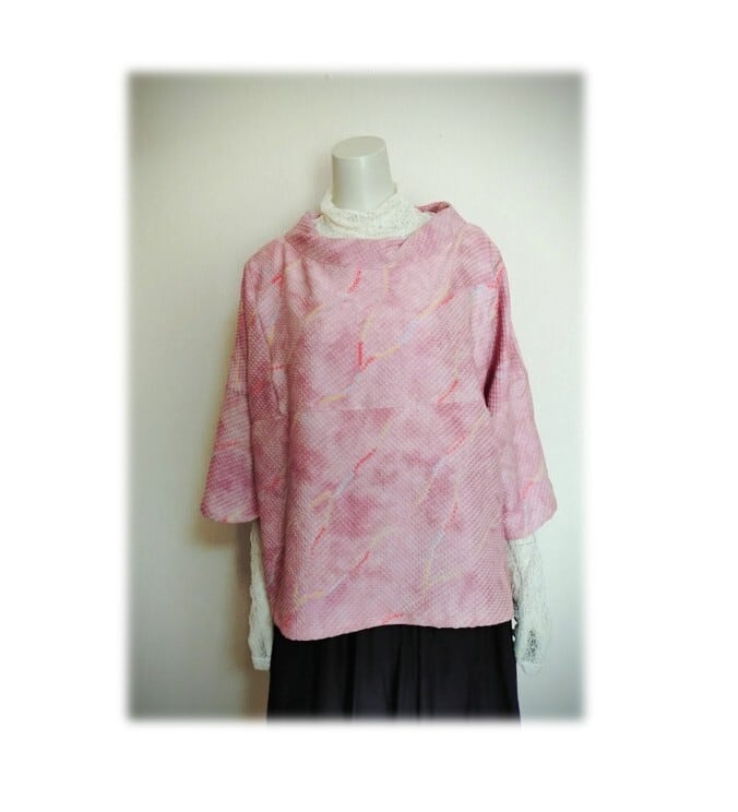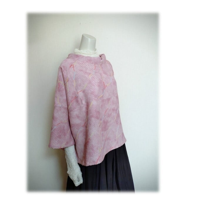 ピンク色にカラフルな配色の柄が入った