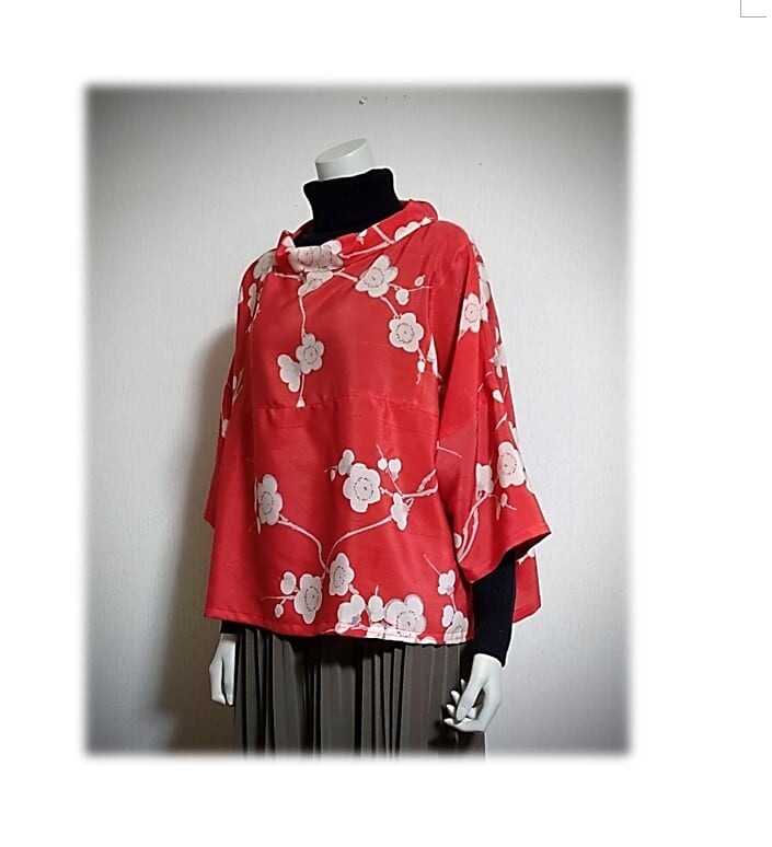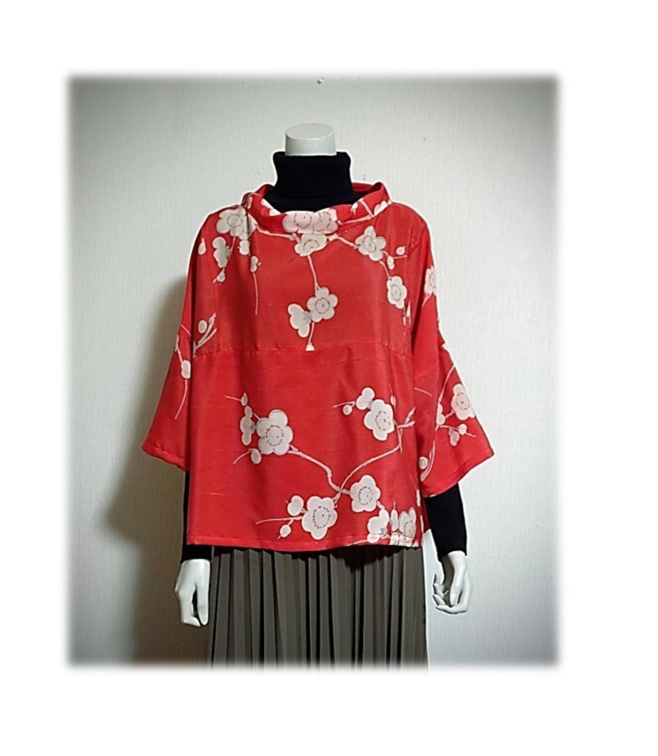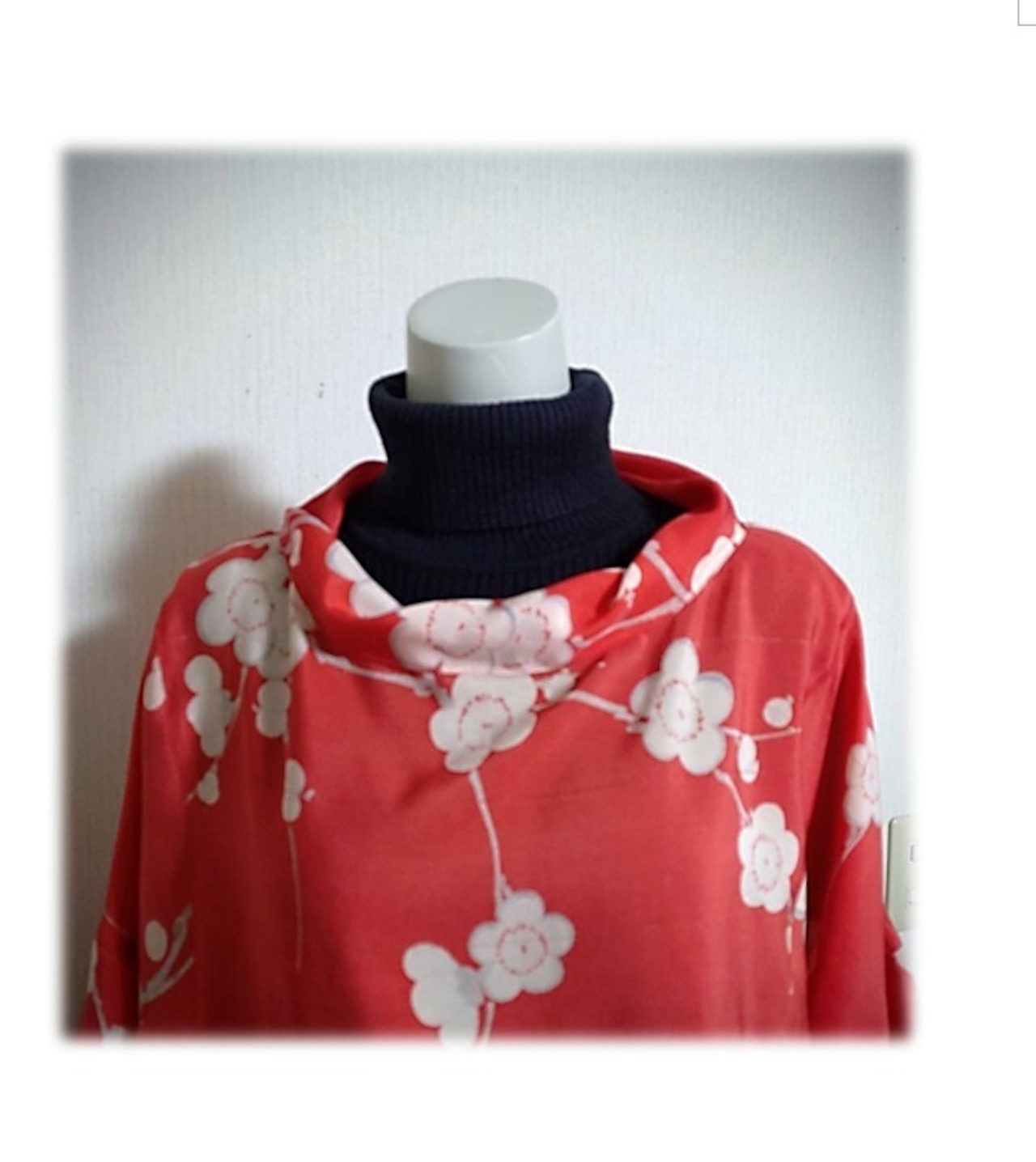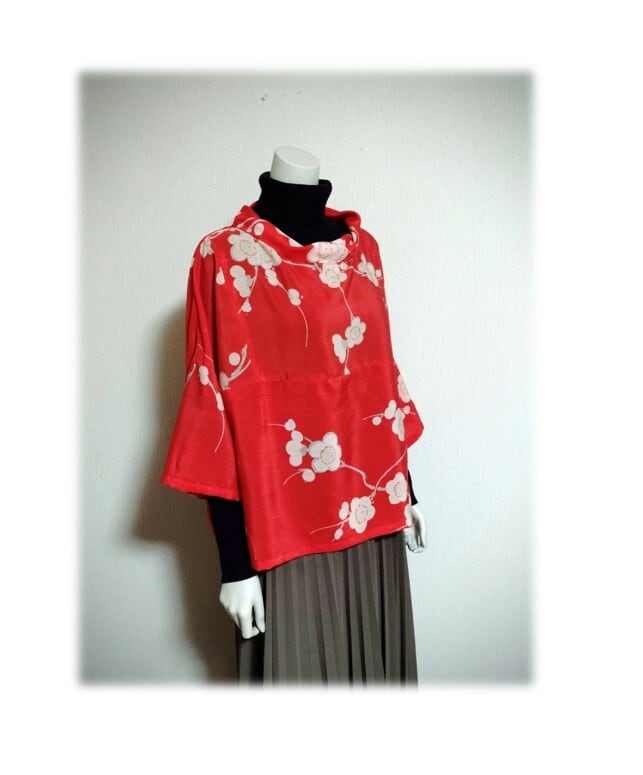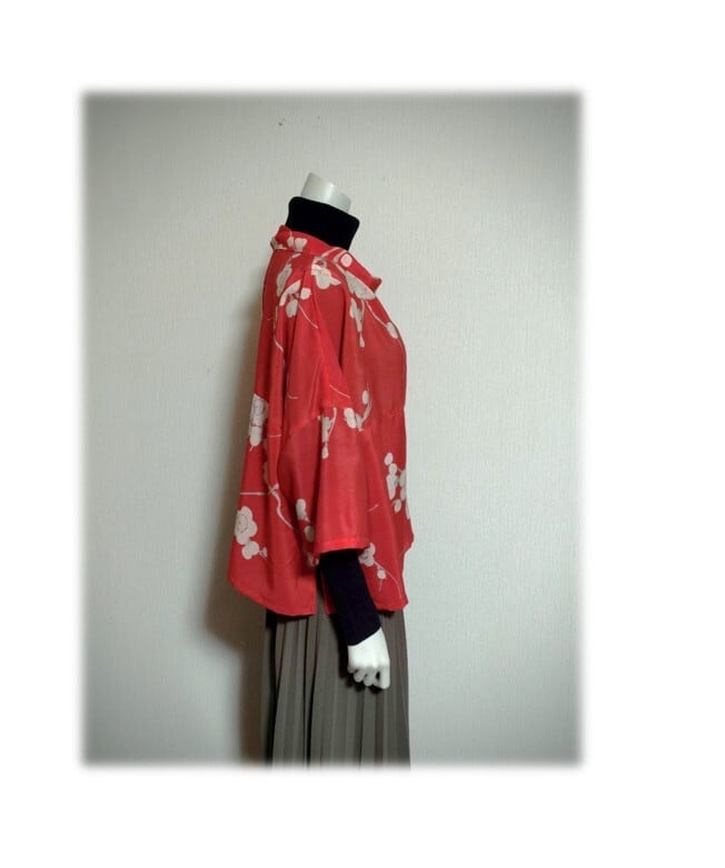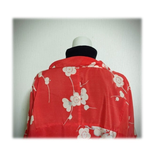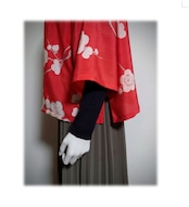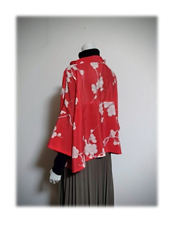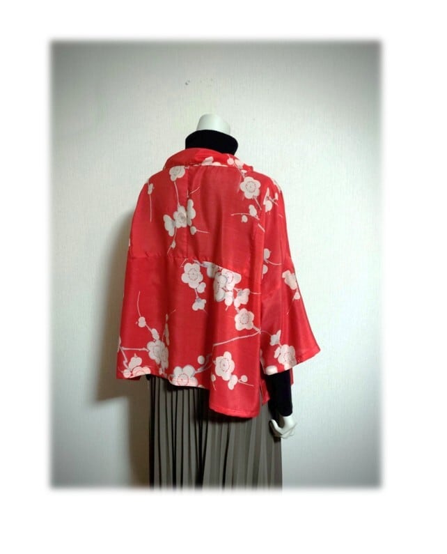 白い梅柄の羽織をリメイクした、