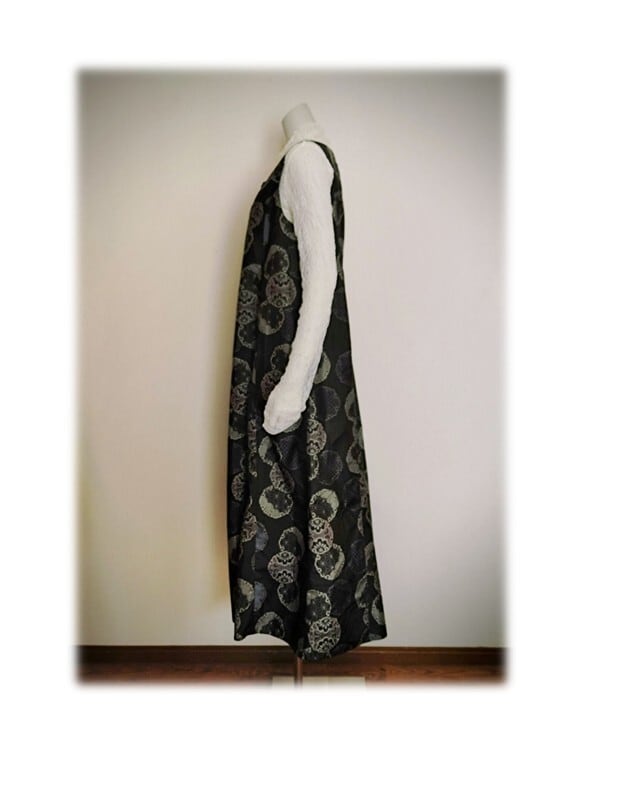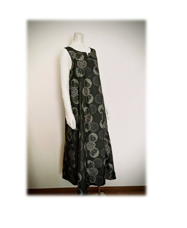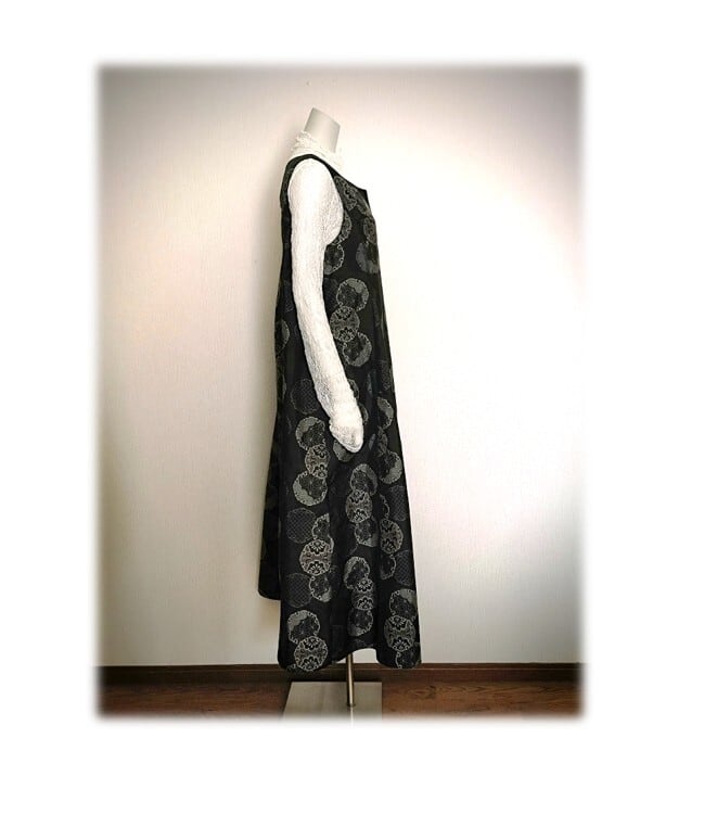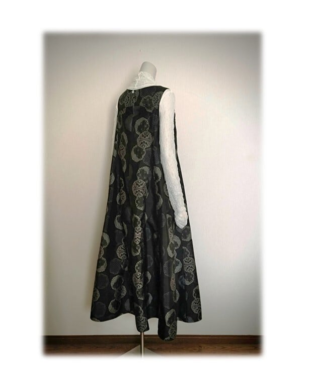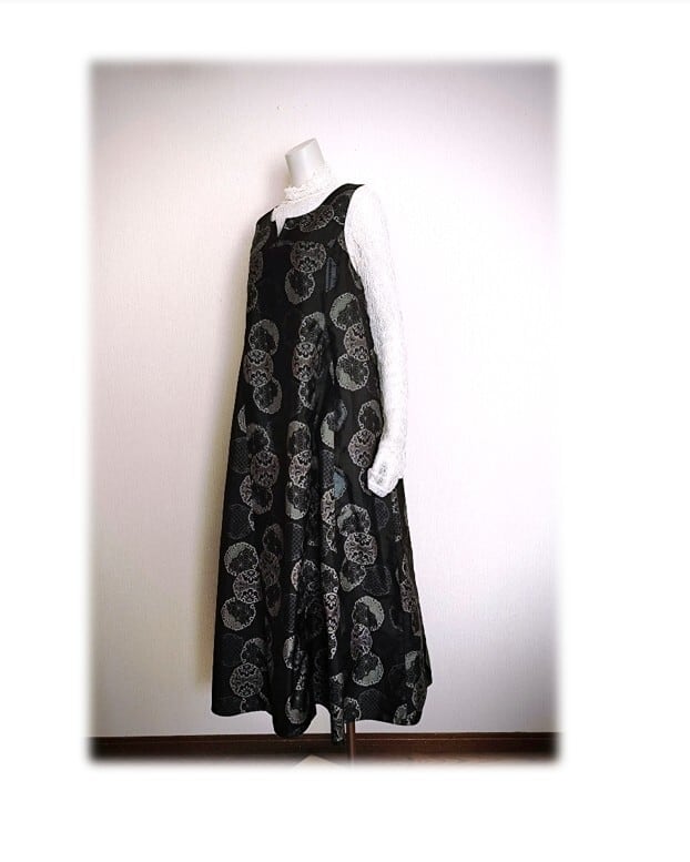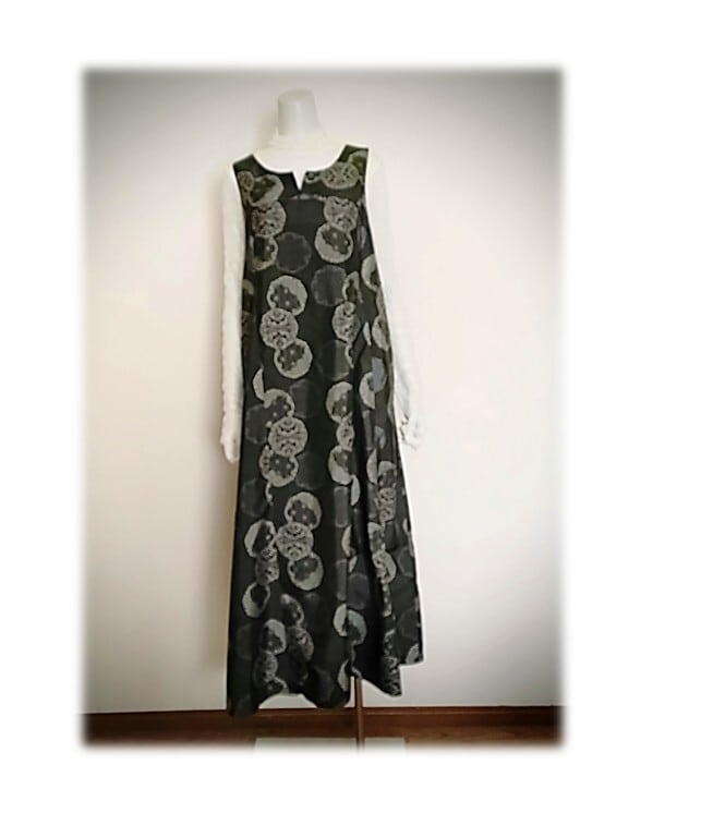 485 1点物 ジャンパースカート テントラインワンピース 大島紬 小さいサイズ 黒