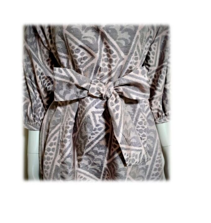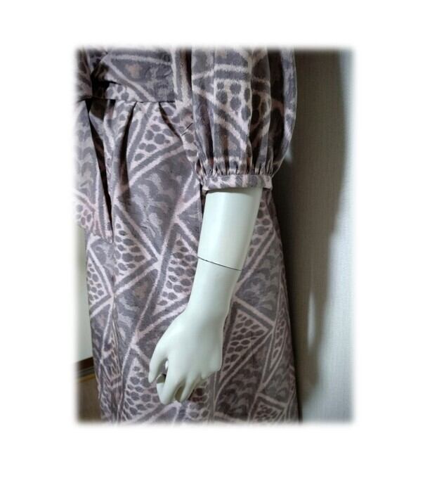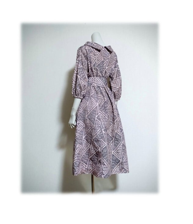 478 レトロなロールカラーワンピース 大島紬 ピンク系 三角 サッシュベルト付き 正絹