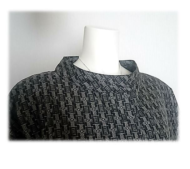 首から離した低いスタンドカラーが、レトロな雰囲気です。