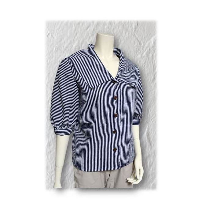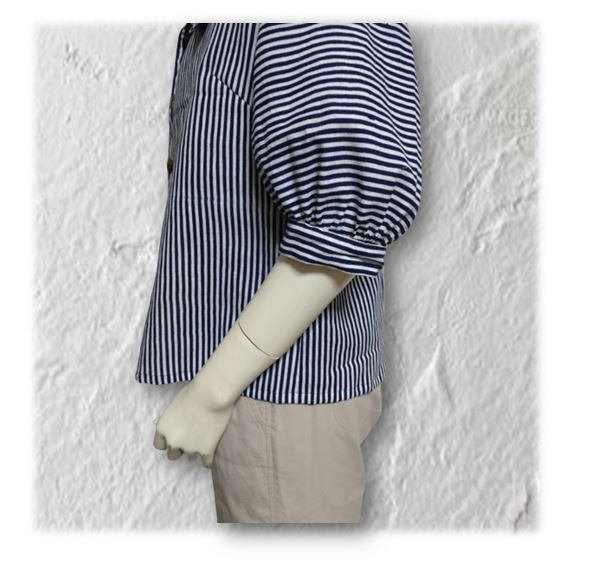 15*縦縞浴衣リメイクレトロカラーブラウス(白×紺)