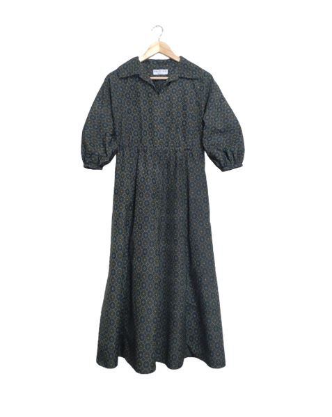 266 村山大島昭和30年代イメージワンピース(黒系/亀甲柄)