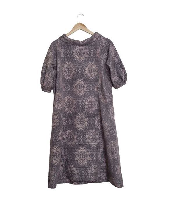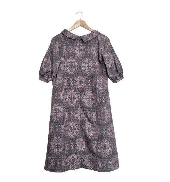 村山大島紬をアップサイクルした、レトロなワンピースです。
