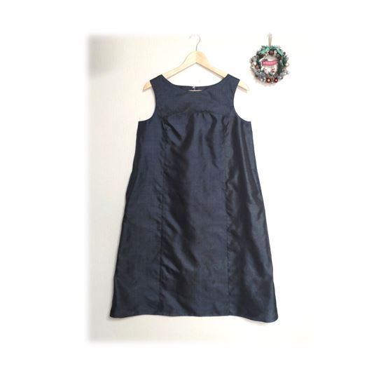 292*少し大きいサイズ Aラインワンピース ジャンスカ 紳士物大島紬 着物アップサイクル ブルー系 1点物