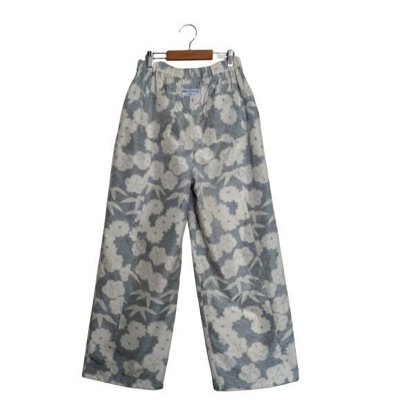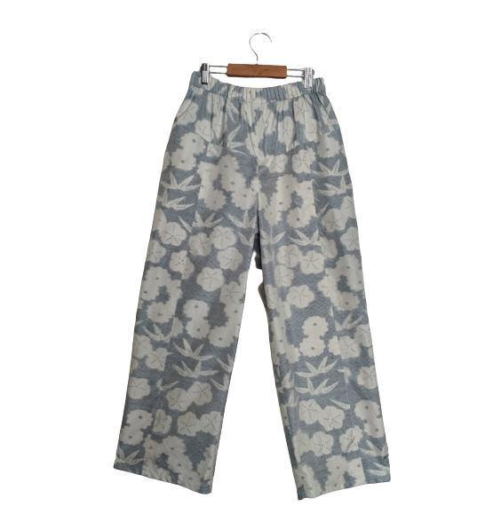 99 染大島紬 ワイドパンツ モデルチェンジ ブルー系 花柄 ロングパンツ テーパードパンツ
