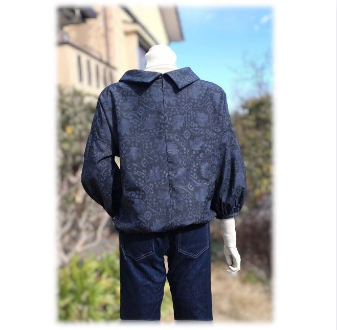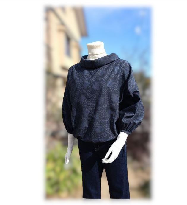 ブラウスは、1950年代風のファネルネックで、レトロなデザイン。
