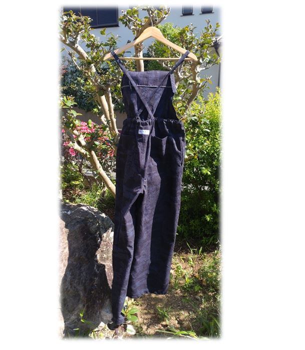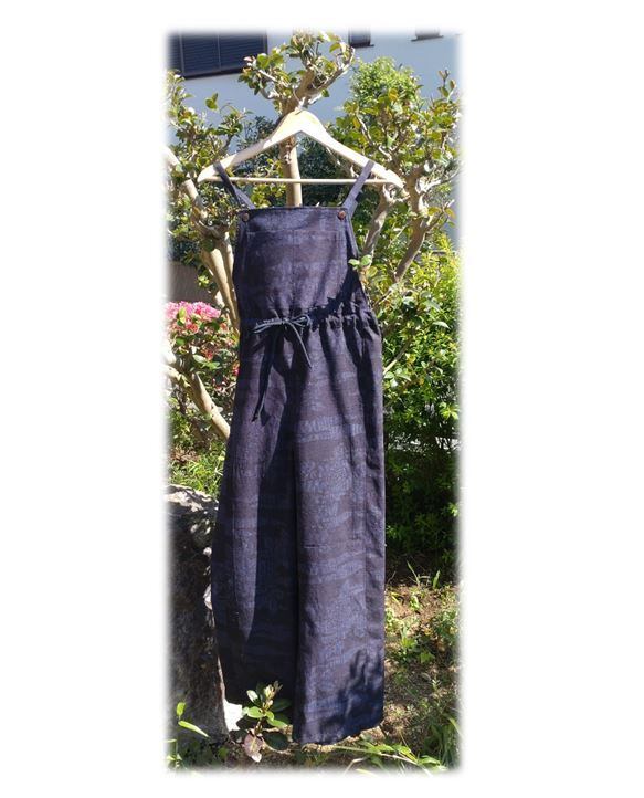 101 サロペットパンツ オーバーオール 紬着物リメイク ワイドパンツ バラ 雲