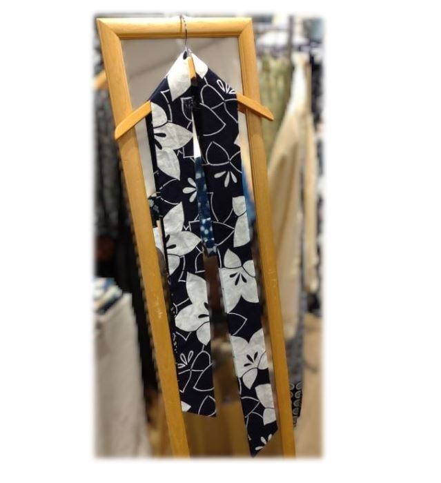 紺と白のツートーンですが、桔梗が大きな柄なので