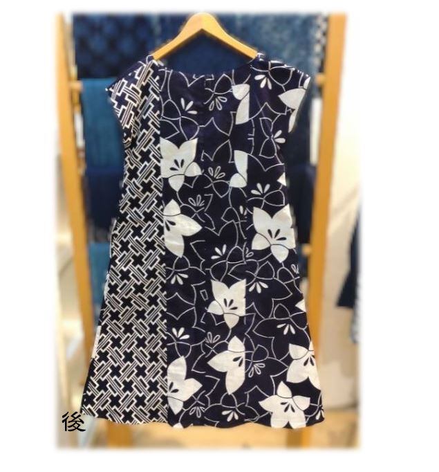 309 ワンピース 浴衣リメイク 2種類の浴衣 フレンチスリーブ Aライン ウェストマーク 夏 夏祭り リゾートファッション 体型カバー