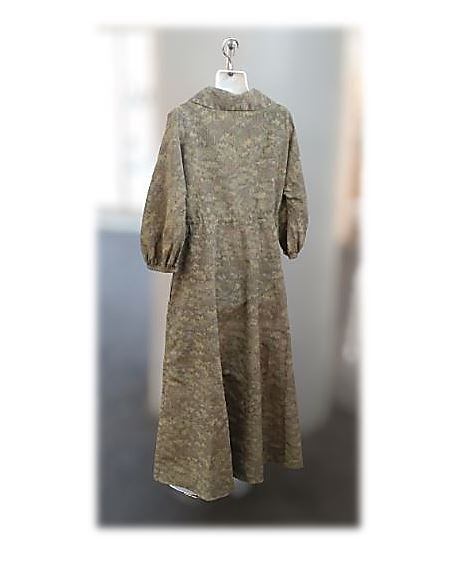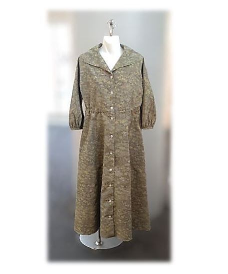 336 1点物 前開きワンピース 抜き衿 デッドストック紬着物地 昭和レトロ 正絹 昭和30年代 お出かけ グリーン系