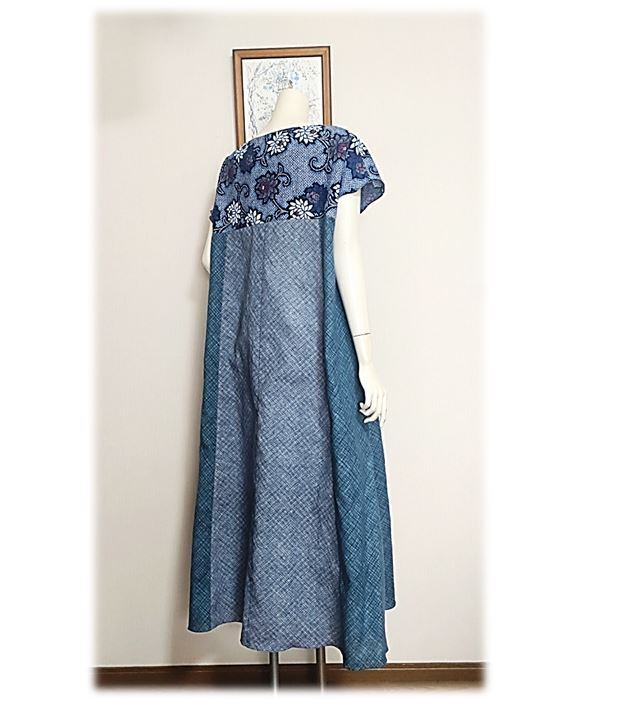 357 世界に1着 3種類のデッドストック浴衣地 着ると可愛い 格子柄×リップル テントラインワンピース キーネック 夏のお出かけ 花柄