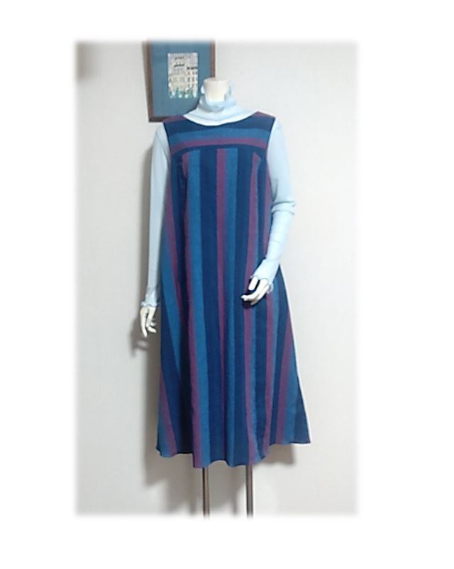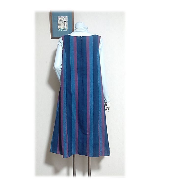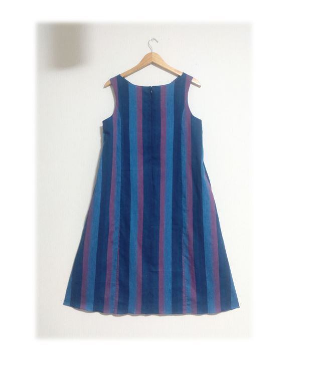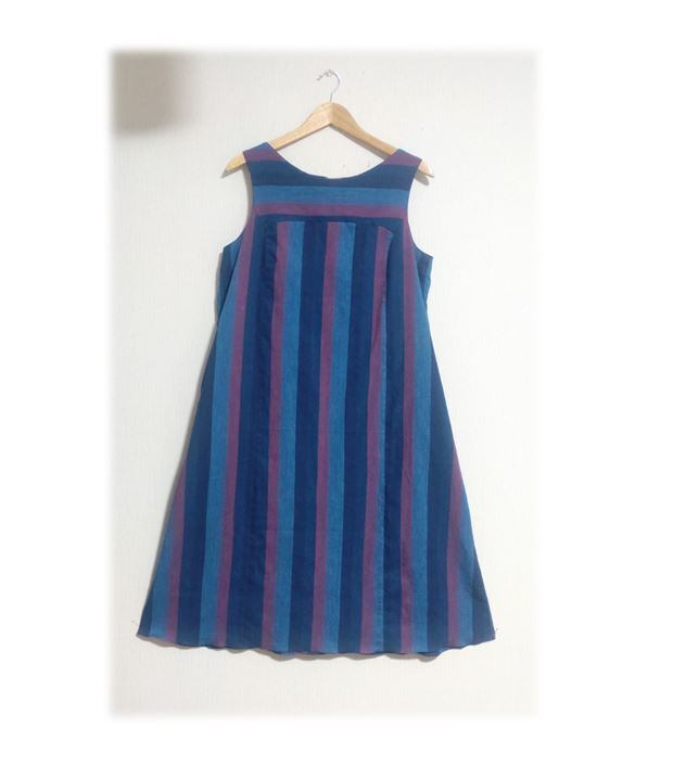 362 Lサイズ Aラインワンピース ジャンパースカート デッドストック浴衣地 しじら織り ストライプ 夏のお出かけ
