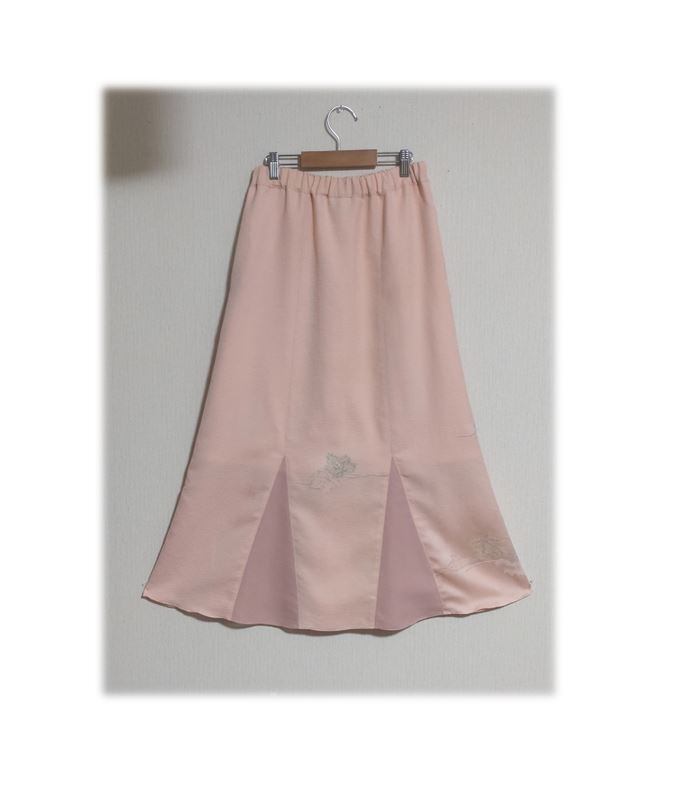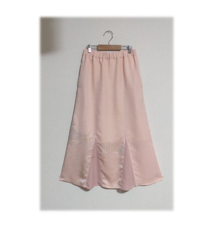 190 1点物 マーメイドスカート ピンクの着物 刺繍 ピンクの絽 着物リメイク 裏地付き