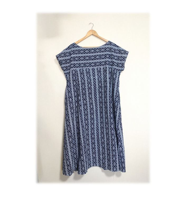 381 世界に1着 大きめB126cm デッドストック浴衣地 着ると可愛い 幾何学柄 テントラインワンピース キーネック 夏のお出かけ