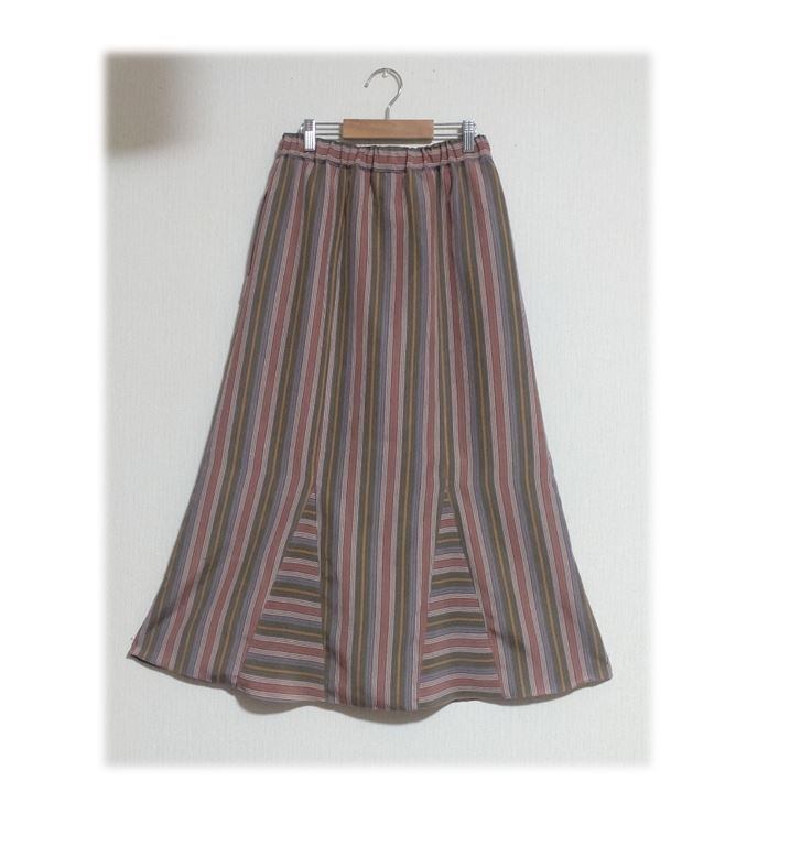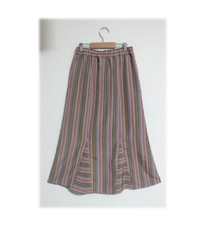 192 1点物 マーメイドスカート 着物リメイク ピンク ストライプ 裏地付き ウェストゴム