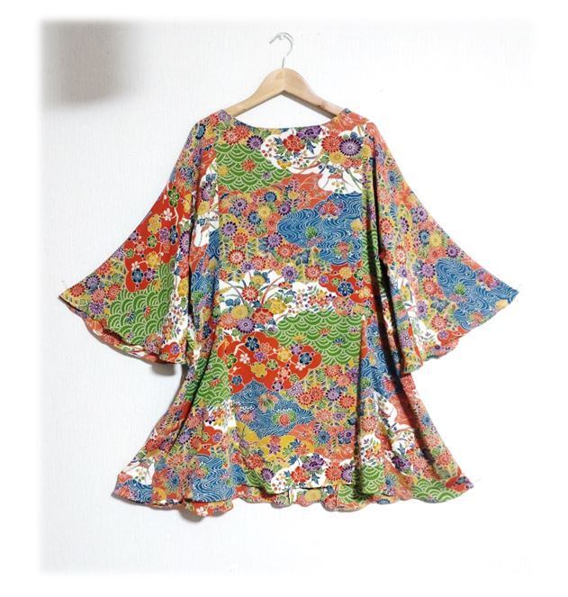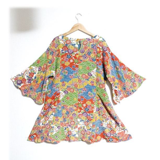11 チュニック 1点物 マーメイド 着物リメイク レイヤード マルチカラー 正絹 小花柄